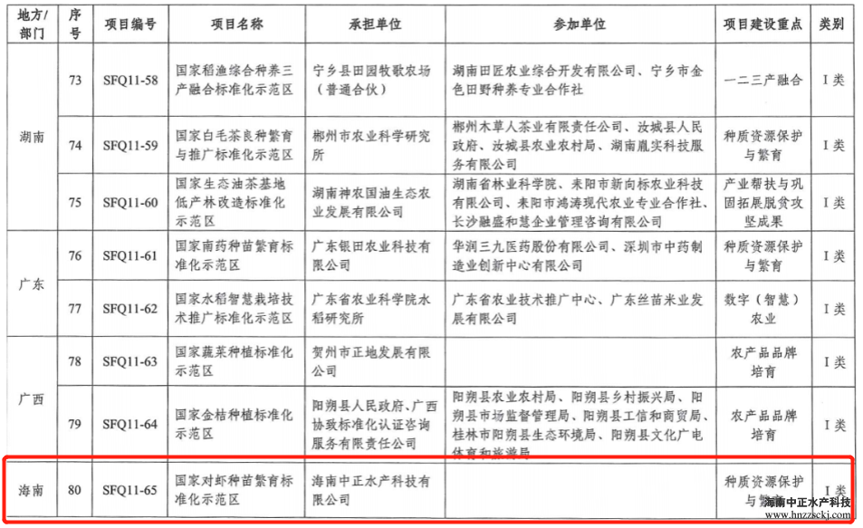 近日,国家标准化管理委员会发布关于下达农业农村及新型城镇化领域标准化试点示范项目的通知,在第十一批国家农业标准化示范区项目中,中正水产作为海南省唯一一家企业,成功入选第十一批国家农业标准化示范区项目。