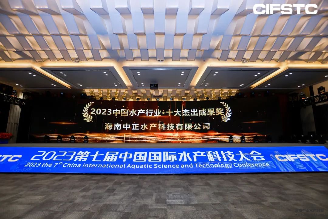 组委会根据对中正水产的综合实力、发展潜力、创新活力、成果转化率等多方面考核结果,颁予中正水产“2023中国水产行业十大杰出成果奖”。中正水产中山基地负责人罗岗代表企业上台领奖。