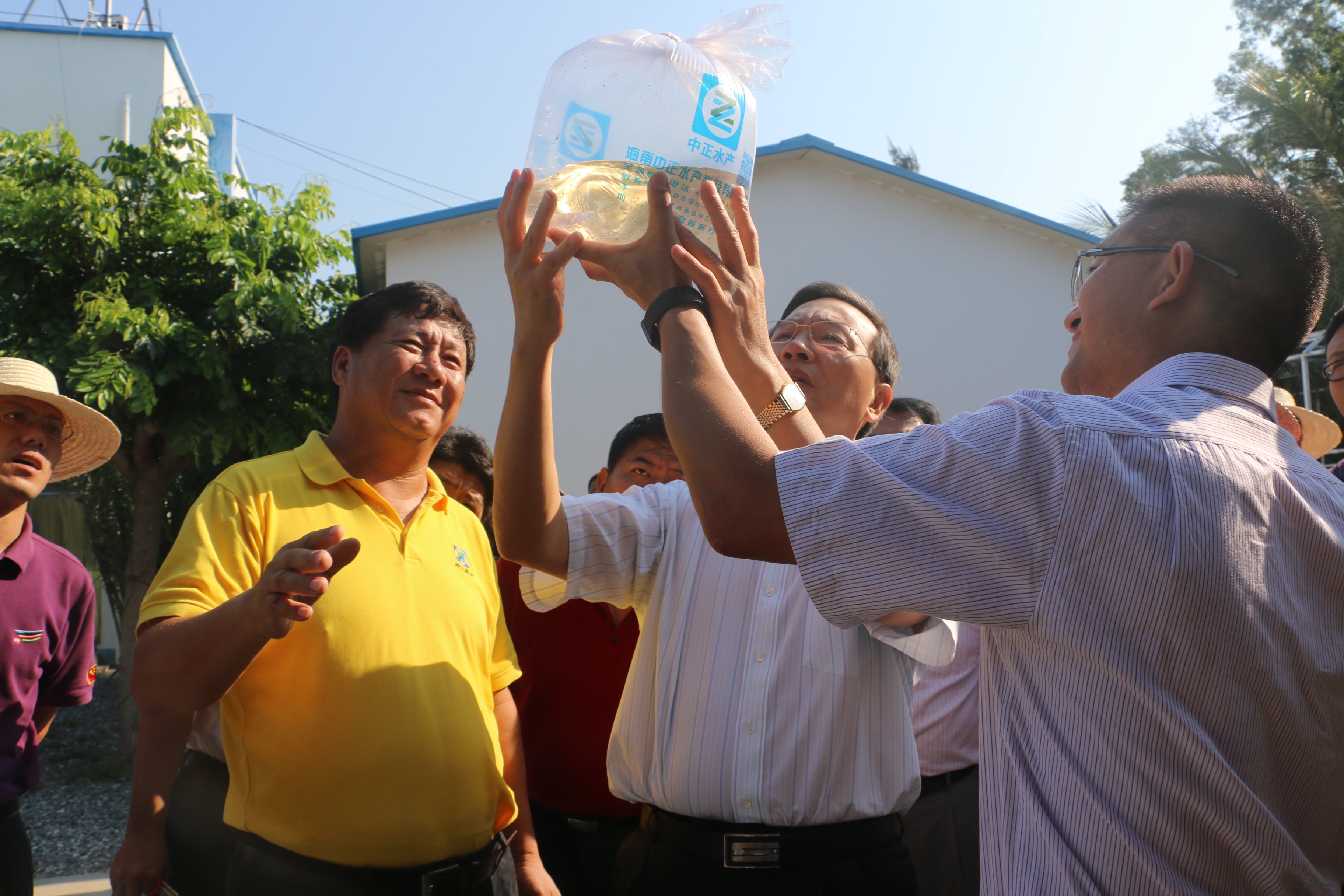 在中正公司新龙基地,李军一行走进亲虾车间、水处理系统车间、优质藻类培育车间,实地的了解到南美白对虾种苗育苗情况、中正公司对此所开展的工作,以及和客户的合作经营模式,探讨南美白对虾种苗繁育及销售中存在的问题和解决之道。李军鼓励中正公司与客户在技术服务、市场营销等方面开展更加紧密的合作,进一步提高效益,同时强调,中正公司管理层要能根据行业现状因地制宜,因时制宜,要多发挥自身优势,精心规划、从长计议、谋划长效项目发展,敢为天下先,做出特色做出自己的品牌,为海南水产行业争光。